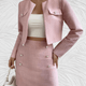 Różowy Zestaw Tweedowy | Krótka Marynarka i Spódnica | Styl Elegancki i Kobiecy